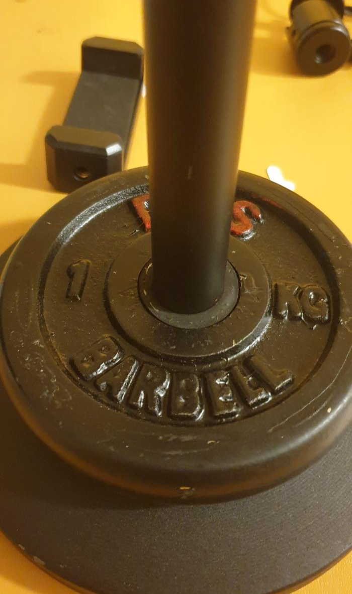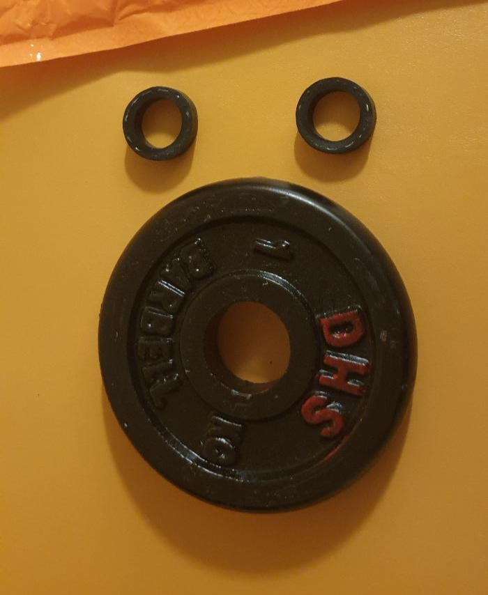 무게추는 헬스클럽에서 사용하는 바벨 원판이 들어있다.
